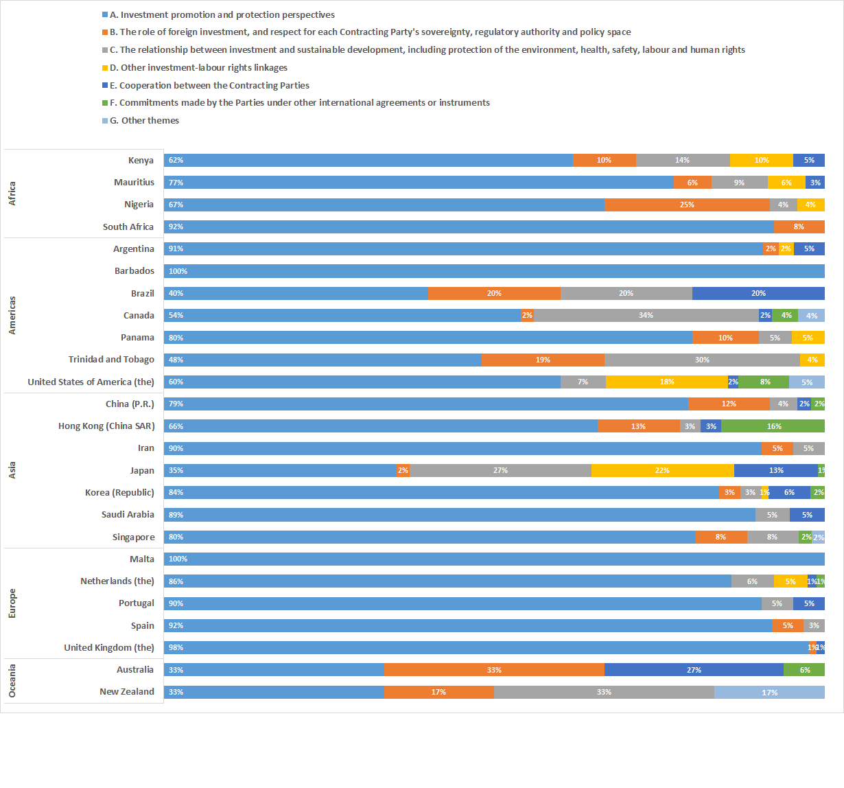 Figure 1 shows the extent to which these themes are reflected in the preambles of treaties in force concluded by the selected jurisdictions, based on the count of paragraphs covering each theme.