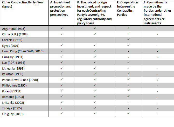 Table 1. The Principles, Aspirations and Ideals behind the Bilateral Investment Treaties of Australia